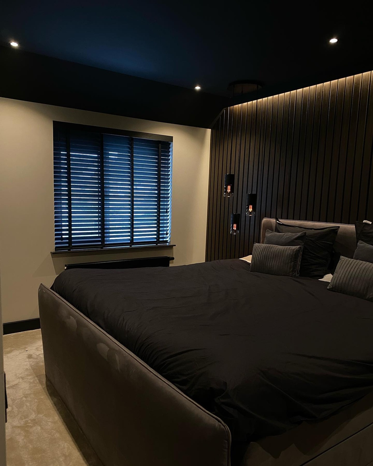 Picture a space where the darkness is balanced by soft lighting and sumptuous textures, inviting you to relax completely.
