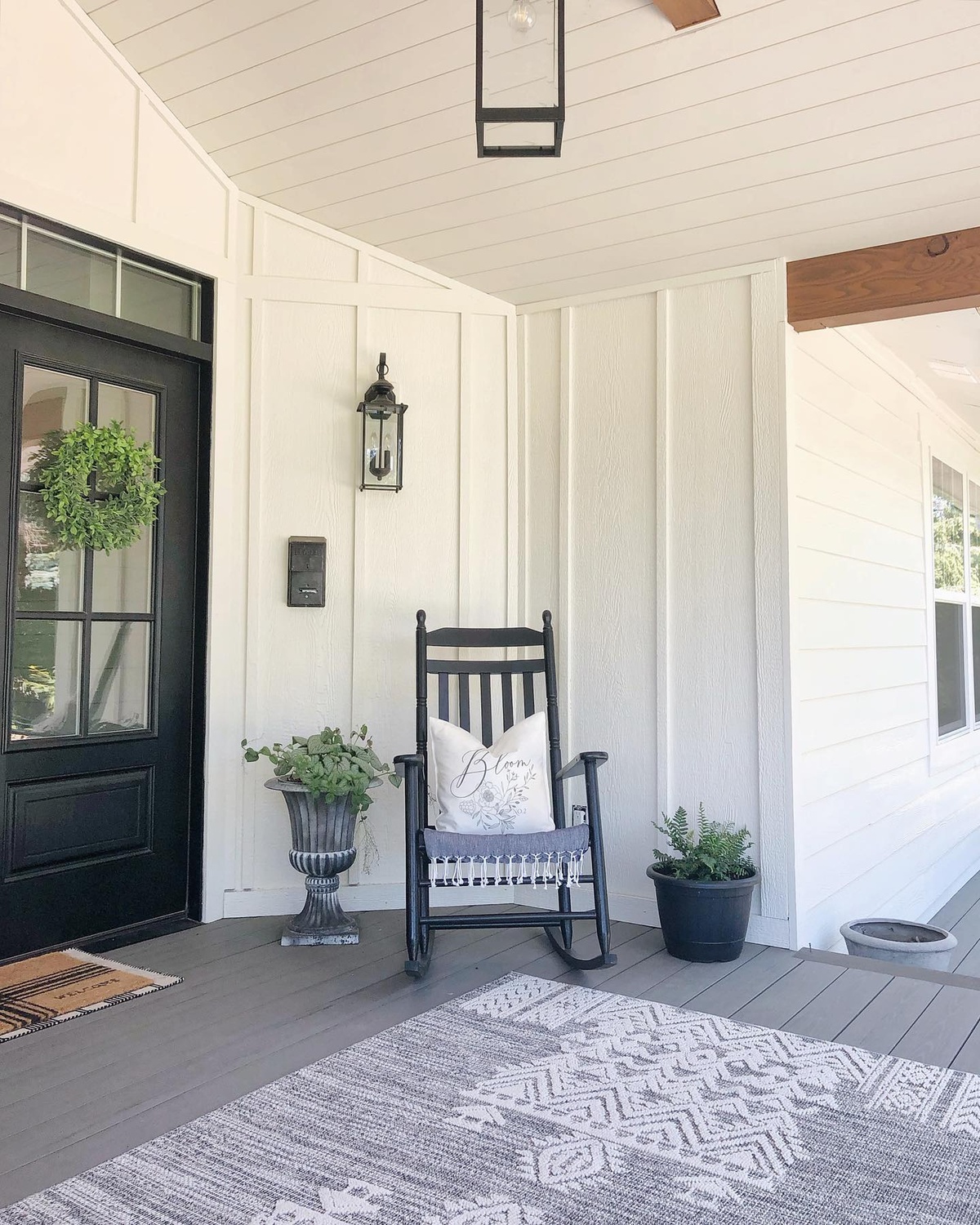 Simple elegance defines this porch, where modern minimalism meets the ease of farmhouse style.