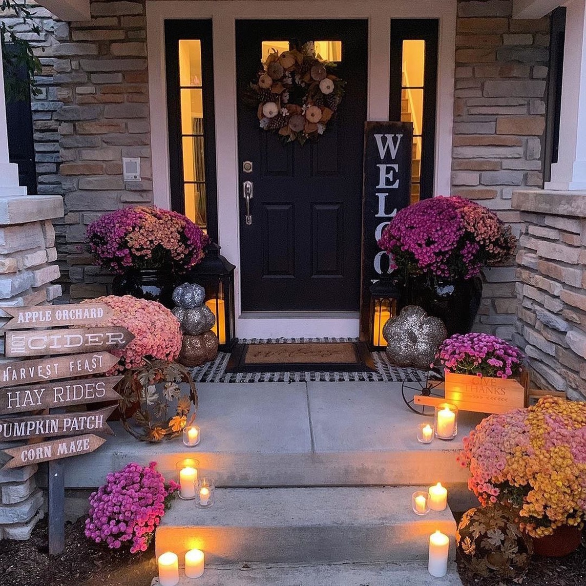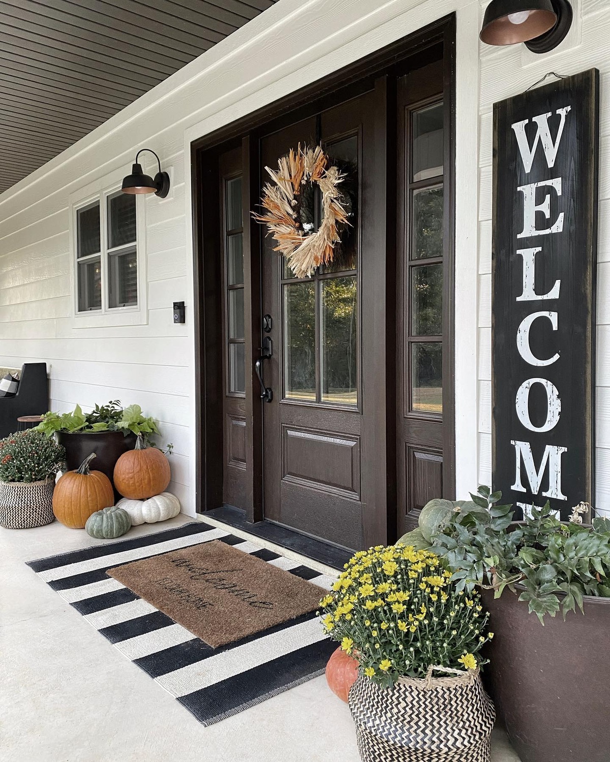 Autumn comes alive on this porch, where the colors of the season are celebrated in full force.