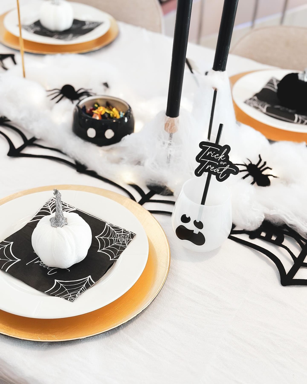 Elegant bats and webs bring an air of mystery to your Halloween table.